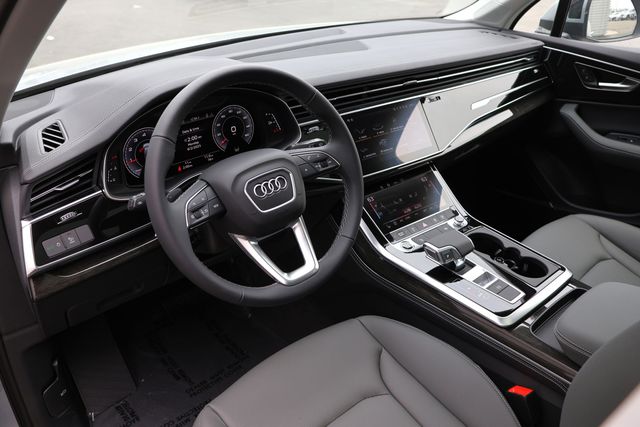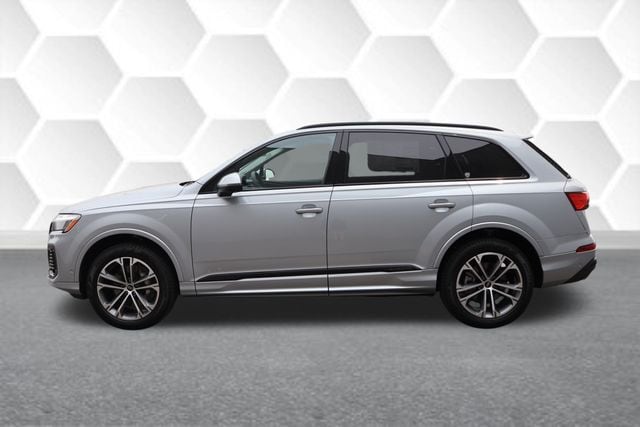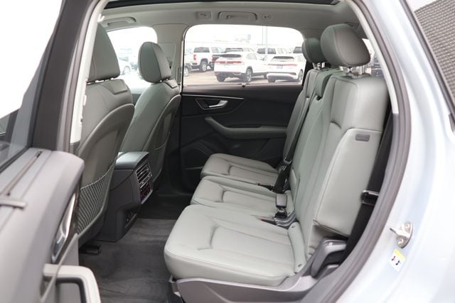 Satellite Silver Metallic 2025 Audi Q7 45 Premium Plus quattro quattro 8-Speed Automatic with Tiptronic 2.0L 4-Cylinder TFSI 7-Pin Adapter, Anthracite Gray Audi Rings, Audi Beam Rings, Audi Guard Protection Kit, Black Door Blades, Black Exterior Trim, Black Grille, Black Optic Package, Black Roof Rails, Black Window Surrounds, Convenience Package, Dark Chrome Exhaust Tips, Dual-Pane Acoustic Glass, Executive Package, Four-Zone Automatic Climate Control, Heated Rear Seats, Heated Steering Wheel, Illuminated Door Sills, LED Interior Lighting Package Plus, Premium Plus Package, Privacy Trunk Cover, Top View Camera System, Traffic Sign Recognition, Trailer Hitch, Wheels: 20" 5-Double-Spoke, Wheels: 20" 5-Double-Spoke Bicolor Finish, Wireless Phone Charging Pad.