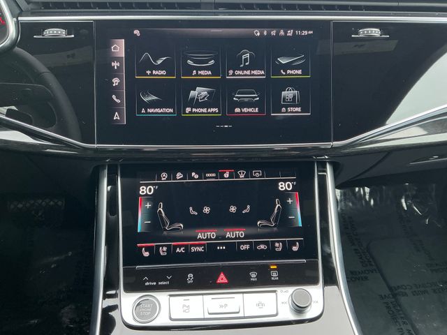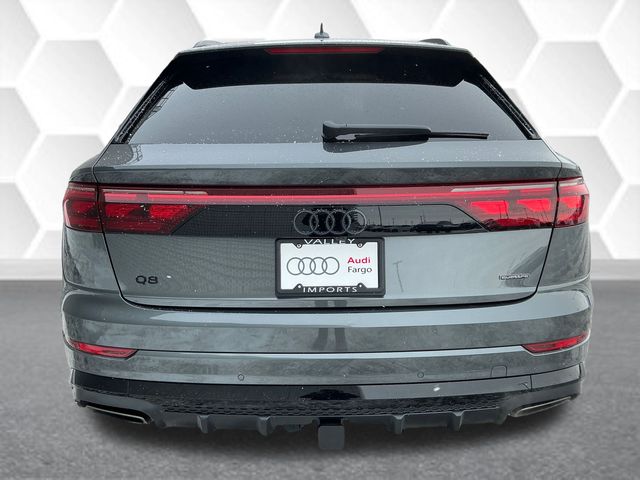 Daytona Gray Pearl Effect 2026 Audi Q8 55 Prestige quattro quattro 8-Speed Automatic with Tiptronic 3.0L TFSI 4-Way Power Lumbar For Passenger Seat, 4-Zone Automatic Climate Control, 7-Pin Adapter, ABS brakes, Active Cruise Control, Adaptive Air Suspension, All-Wheel Steering, Alloy wheels, Anthracite Gray Audi Rings, Audi Guard All-Weather Mats, Audi Guard Cargo Mat, Bang & Olufsen Premium Sound System with 3D Sound, Black Exterior Trim, Compass, Control Buttons in Gloss Black with Haptic Feedback, Dark Chrome Exhaust Tips, Dinamica Headliner, Dual-Pane Acoustic Glass For Side Windows, Electronic Stability Control, Extended Leather Package, Front dual zone A/C, Front Seats with Ventilation, Head-Up Display, Heated door mirrors, Heated Front Bucket Seats, Heated front seats, Heated Rear Seats, Heated Steering Wheel, Illuminated Door Sills, Illuminated entry, Illuminated S Line Door Sills, Individual Contour Front Seats, Intersection Assist, LED Interior Lighting Plus Package, Low tire pressure warning, Luxury Package, Massage Function For Front Seats, Memory Seat Function For Front Passenger, Navigation System, OLED Taillights, Power Liftgate, Power Rear Side Windows with Manual Tailgate Sunshades, Power Soft-Closing Doors, Prestige Package, Remote keyless entry, Remote Park Assist Plus, S Line Black Optic Package, S Line Exterior, Top View Camera System with Virtual 360 View, Traction control, Trailer Hitch, Valcona/Cricket Leather Seating Surfaces, Wheels: 22" 5-Double-Arm Design with Bicolor Finish. Price does not include tax, title, license, or fees.$4000 - National Customer Credit. Exp. 03/02/2026
