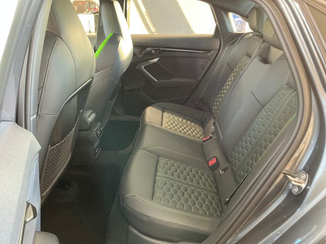daytona gray pearl effect 2026 Audi RS 3 2.5T quattro quattro 7-Speed Automatic S tronic 2.5L 5-Cylinder TFSI 180 Mph Top Speed Limiter, Carbon Engine Cover, Dynamic Plus Package, Eramic Front Brakes with Red Calipers, Floor Mats with RS Logo and Green Stitching on Piping, RS Design Package - Green, Sport Exhaust System with Black Tips.