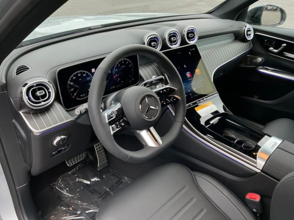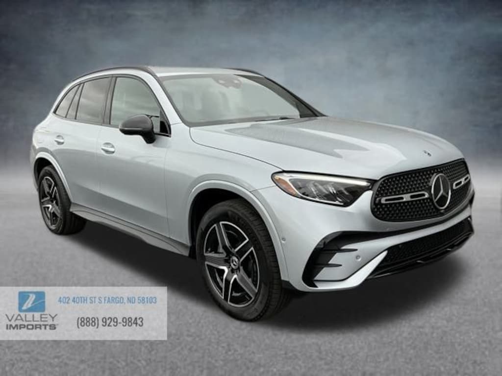 Cirrus Silver Metallic 2026 Mercedes-Benz GLC GLC 300 4MATIC® 4MATIC® 9-Speed Automatic I4 Active Lane Change Assist, Active Speed Limit Assist, AMG® Line, AMG® Line Body Styling, AMG® Line Exterior, AMG® Line Floor Mats, AMG® Line Interior, Animated LED Logo Projector, Automatic Lane Change, BAS PLUS w/Cross-Traffic Assist, Black Roof Rails, Burmester 3D Surround Sound System. Burmester is a registered trademark of Burmester Audiosysteme GmbH, Berlin, Germany, Class II Trailer Hitch, DISTRONIC PLUS® w/Steering Assist, Driver Assistance Package, Driver Assistance Package Plus, Enhanced Ambient Lighting, Exclusive Trim, Flat-Bottom Multifunction Sport Steering Wheel, GUARD 360, Heated Steering Wheel, High-Gloss Black Elements, Illuminated Door Sills, MB Navigation, MB-Tex Instrument Panel, MBUX Entertainment Plus, Night Package, Panorama Sunroof, Perforated Brake Discs, PRE-SAFE® Brake w/Pedestrian Recognition, PRE-SAFE® Impulse Side, PRE-SAFE® PLUS, Sound Personalization, Spoiler, Surround View System, Ventilated Front Seats, Wheel Arch Trim Painted in Body Color.